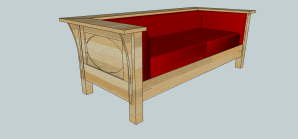 I also did a little designing. My much better half has given me permission to build a Craftsman-style couch to match out armchair. The CAD rendering looks like this: